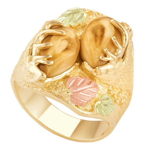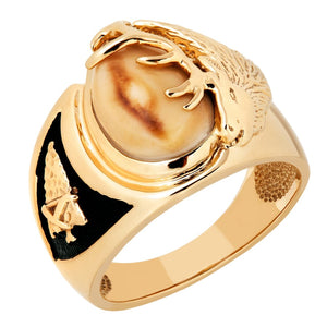 Twin Peaks - Gold Elk Ivory Mens Ring