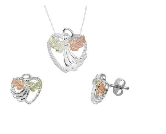 Heart Angels - Silver Black Hills Gold Earrings & Pendant Set