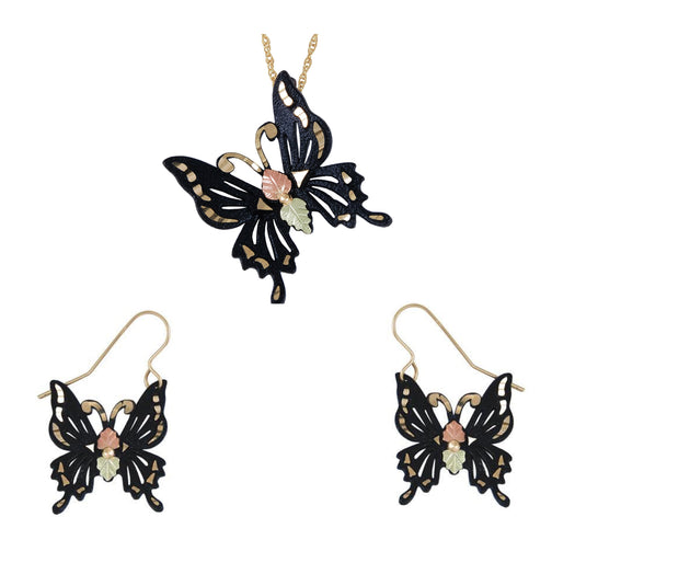 Powder Coated Butterflies - Black Hills Gold Earrings & Pendant Set