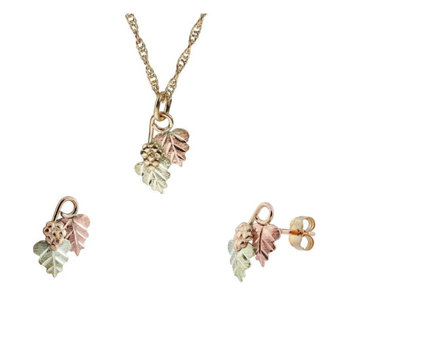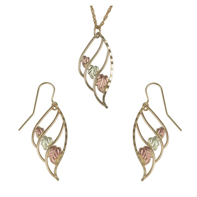 Traditional Foliage - Black Hills Gold Earrings & Pendant Set