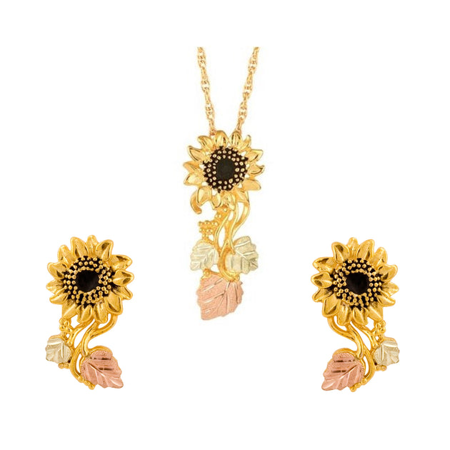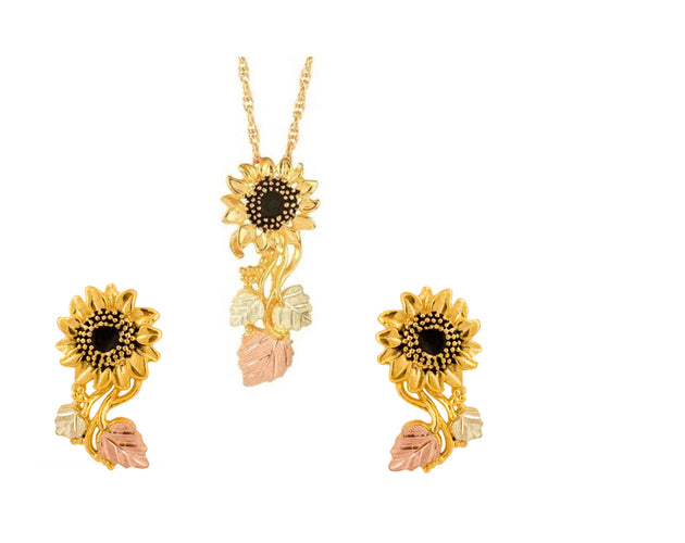 Sunflower - Black Hills Gold Earrings & Pendant Set