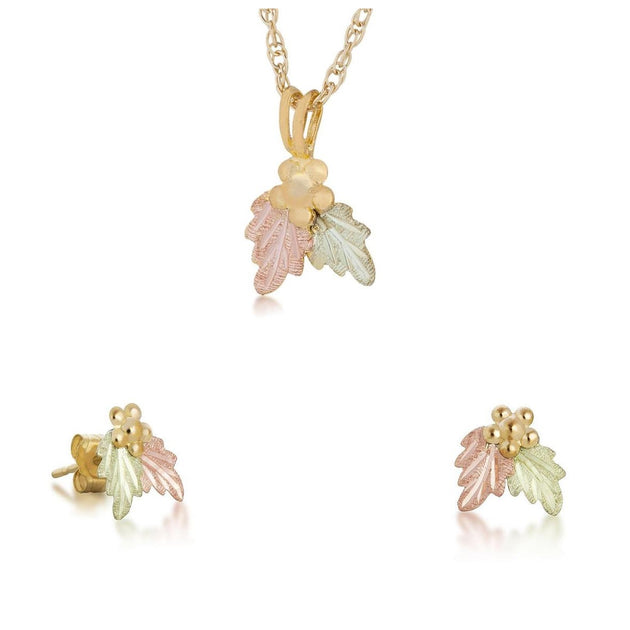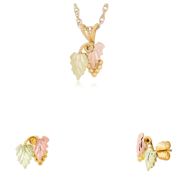 Foliage Grapes - Black Hills Gold Earrings & Pendant Set
