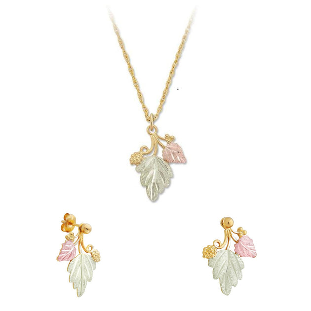 Foliage Grapes III - Black Hills Gold Earrings & Pendant Set