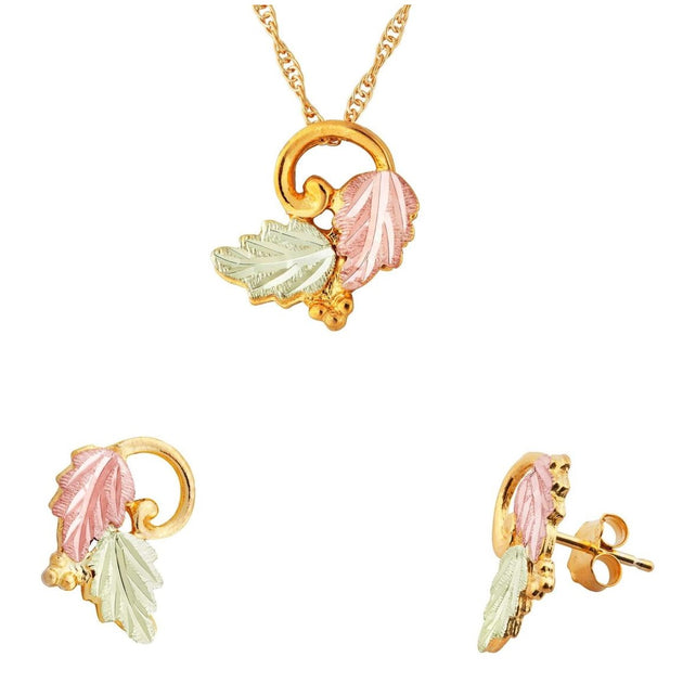 Foliage Hearts III - Black Hills Gold Earrings & Pendant Set