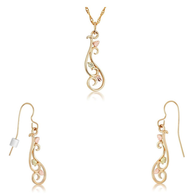Swirly II - Black Hills Gold Earrings & Pendant Set