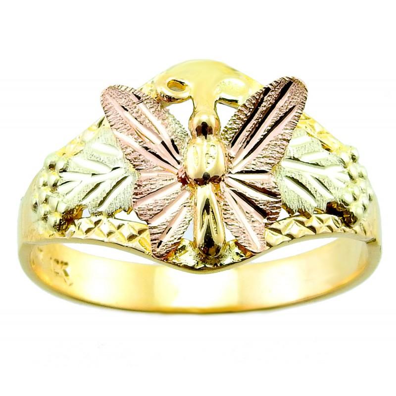 An elegant butterfly design adorns this ladies ring. It features classic Black Hills Gold styling.