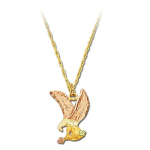 An elegant 10k gold pendant featuring an eagle design and the traditional Black Hills Gold imagery.
