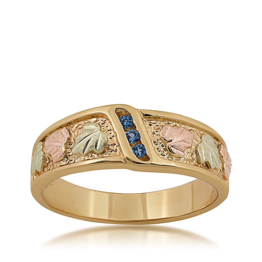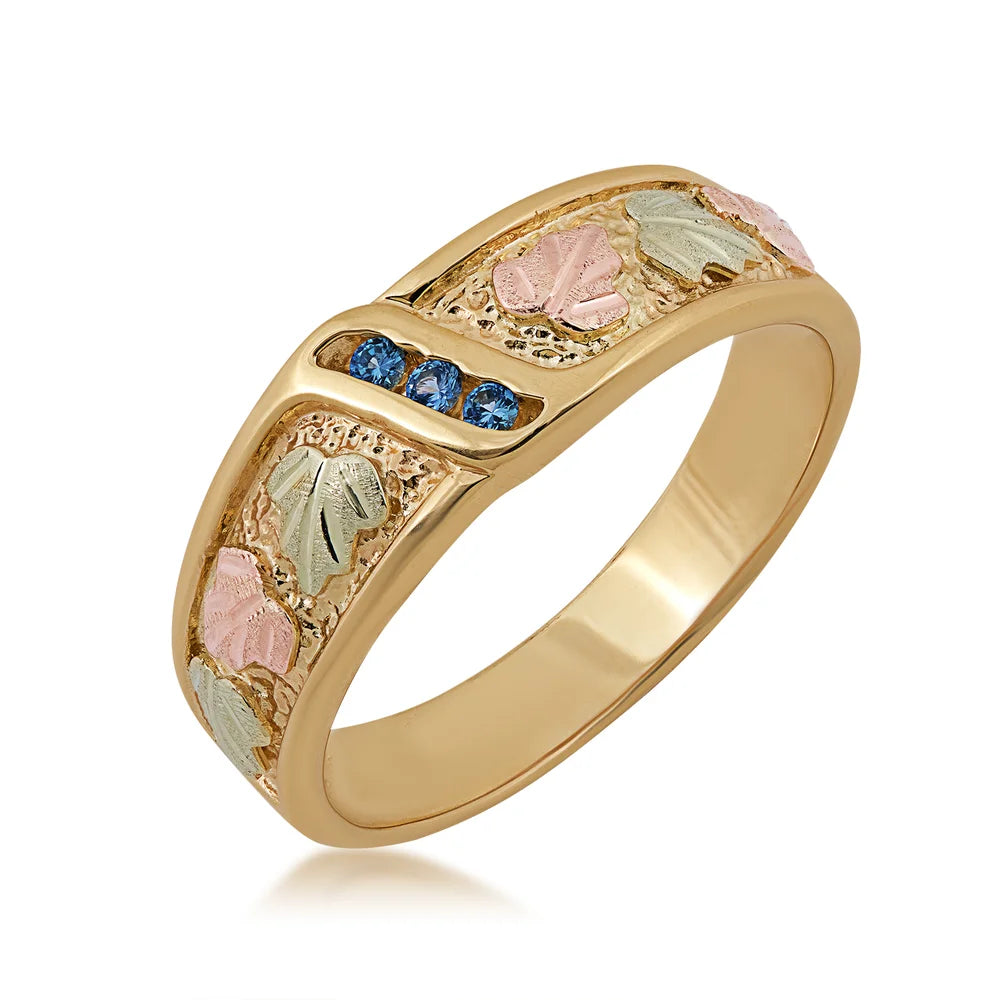 Mens Three Stone - Yogo Sapphire Black Hills Gold Ladies Ring