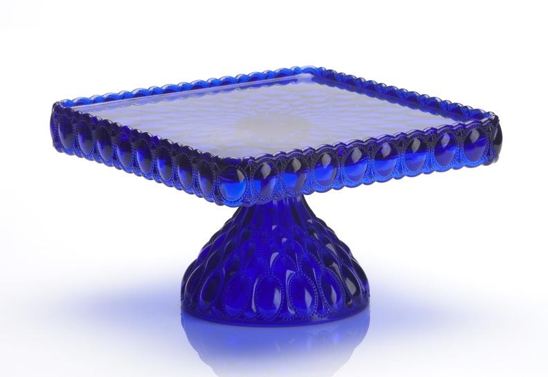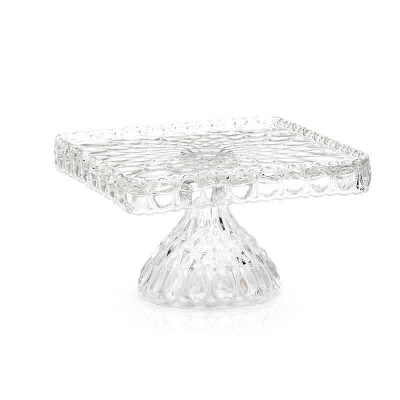 This beautiful glass square cake stand makes the perfect housewarming or wedding gift. Available in 7 colors. Dimensions 6.5" H x 10" W.