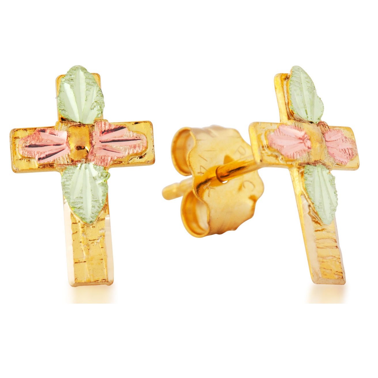 These beautiful earrings feature stylish cross designs. It features classic Black Hills Gold styling.