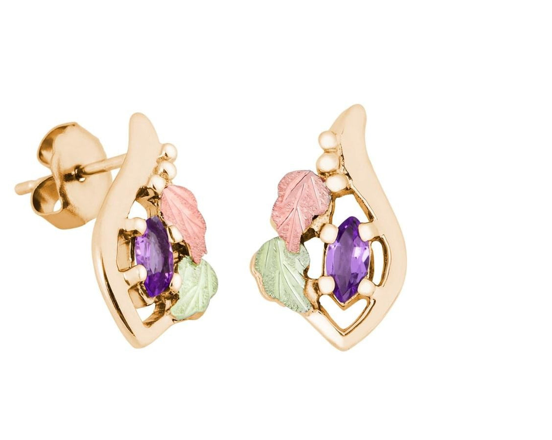 - Marquise Amethyst - Black Hills Gold Earrings