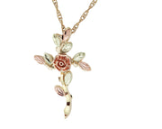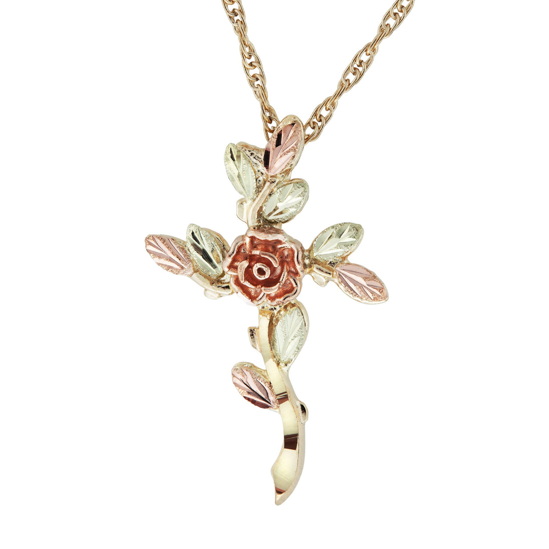 This pendant features and elegant foliage cross. It features classic Black Hills Gold styling.