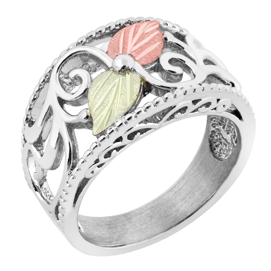 An elegant foliage design adorns this stylish sterling silver ladies ring. It features classic Black Hills Gold styling.
