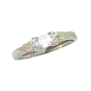 A glimmering, genuine white topaz stone adorns this stylish sterling silver ladies ring. It features classic Black Hills Gold styling.