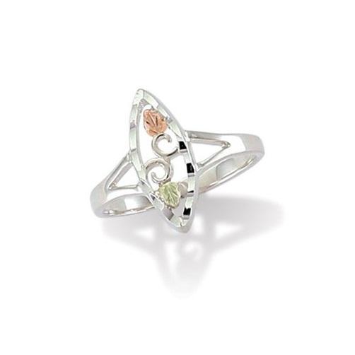 An elegant foliage design adorns this stylish sterling silver ladies ring. It features classic Black Hills Gold styling.