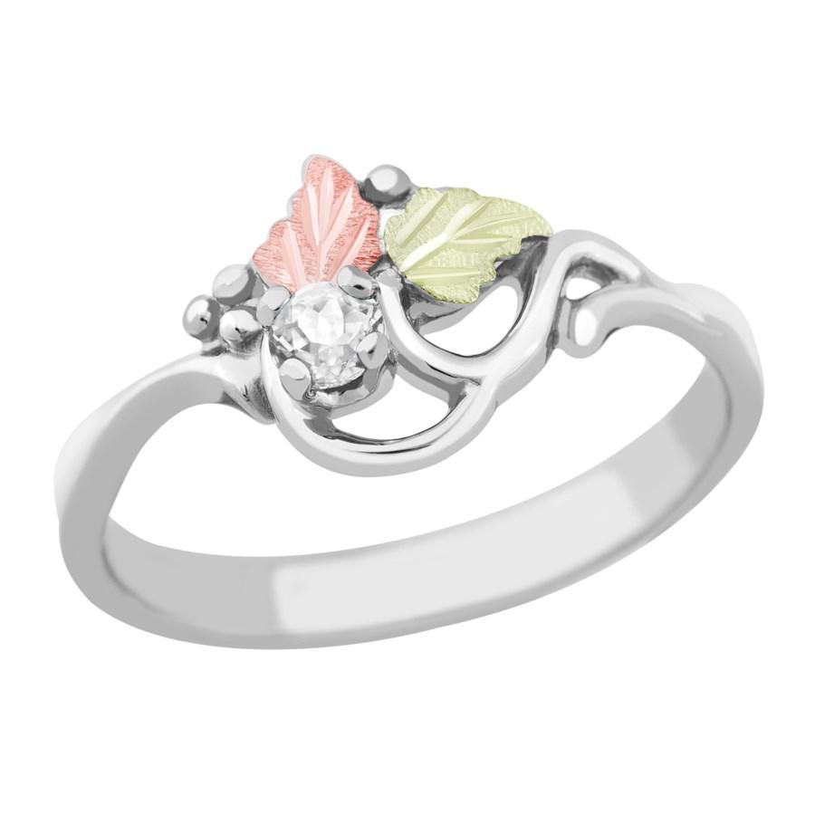 A glimmering, genuine white topaz stone adorns this stylish sterling silver ladies ring. It features classic Black Hills Gold styling.