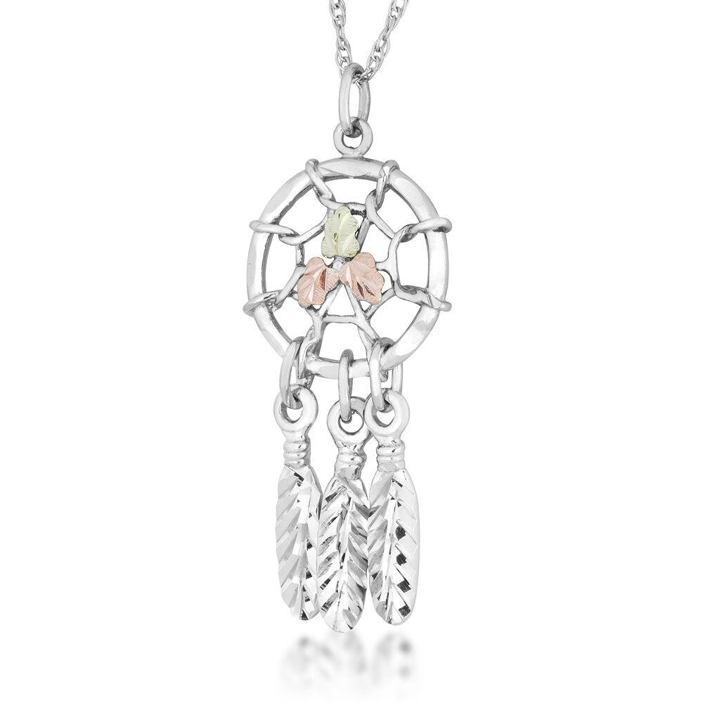 This beautiful sterling silver pendant is adorned by an elegant dreamcatcher design. It features classic Black Hills Gold styling.