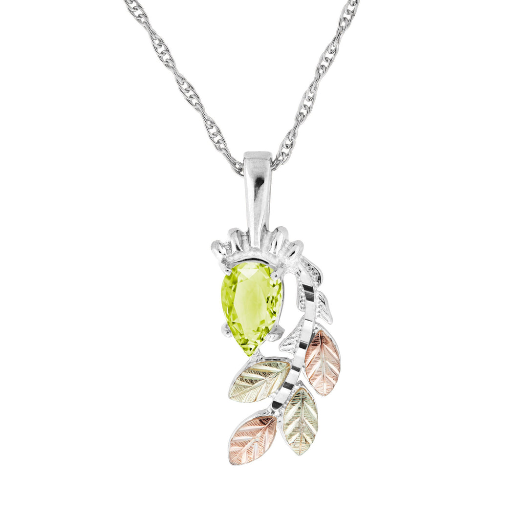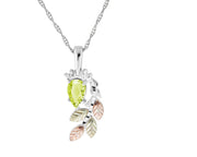 This beautiful sterling silver pendant is adorned by a sparkling peridot stone. It features classic Black Hills Gold styling.